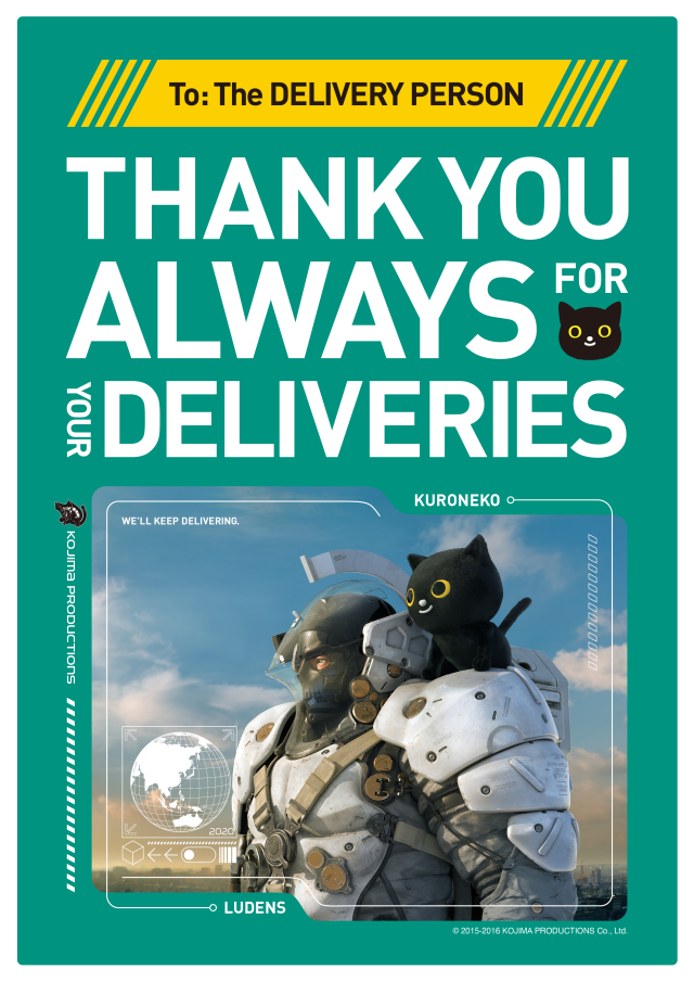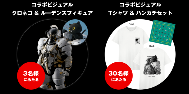 說到黑貓宅急便呢,近日於日本官網上正式宣布要與《死亡擱淺》聯名「運送」啦!而且為了慶祝這一次首波聯名,官方特別加碼推出抽獎活動,只要遵照黑貓宅急便與小島工作室官方推特的指示,便有機會得到模型、T恤等聯名周邊。