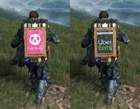 因為《死亡擱淺》遊戲中的運送貨物的過程,這款遊戲一度成為當時的熱門迷因之一,儘管遊戲本身的遊戲性與故事性十足,但頑皮的玩家們還是不由得將其過程一一給山姆大叔惡搞成現實世界中我們所熟知的「外送員」,包含Food Panda、Uber Eats、DHL、FedEx、黑貓宅急便…等,你想得到的貨運品牌大概都讓山姆大叔運過了 XD