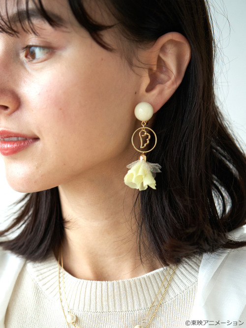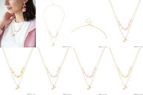 當然,除了服飾外,官方更加碼公開了耳環、項鍊等飾品商品,如果妳認為「喔~這些太少女了,並不適合我」的話,妳也可以選擇聯名角色吊飾或是胸章,看著這六位主角們穿著聯名洋裝的樣子,也覺得格外討喜!
