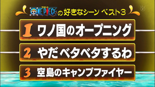 另外,尾田老師也提到了自己最喜歡的《ONE PIECE》漫畫場景前三名,分別是「和之國開幕」、「羅賓說夏波帝諸島地上黏黏的」、「空島的營火晚會」。