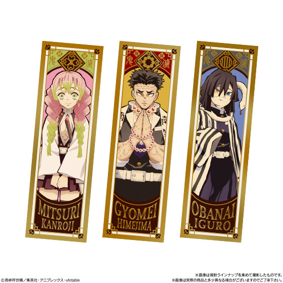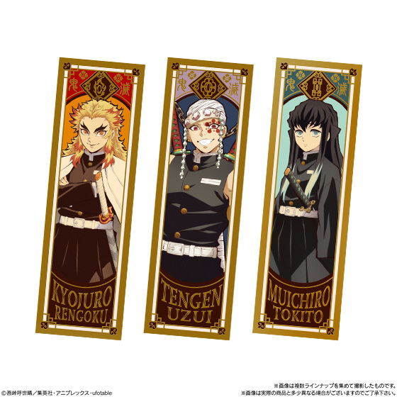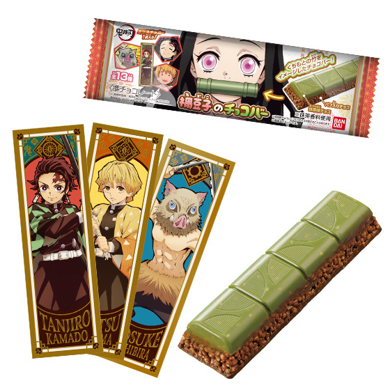 這款小點心依照禰豆子最醒目的特色-「竹筒」作為設計,上方以抹茶口味的巧克力,搭配上酥脆的底層口感,擁有和風的味覺組合非常具有特色。每款購入都附有一張迷你貼紙,有13種樣式隨機配置,包含主角四人眾以及九柱。食玩最吸引人的地方就在這裡啦!具有收集癖的朋友想必又要爆買一波了XD。