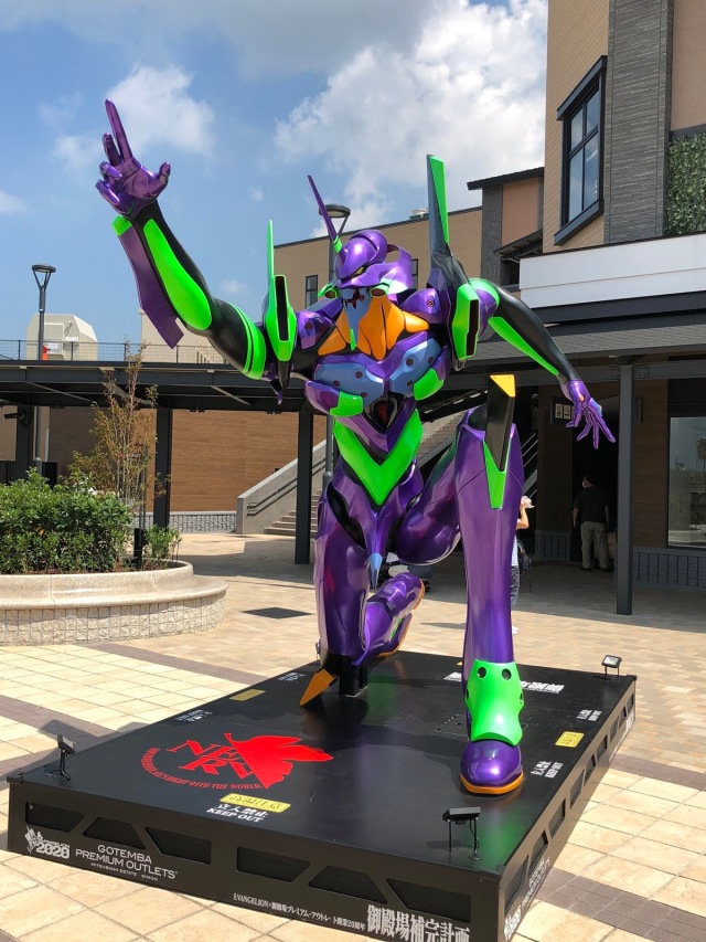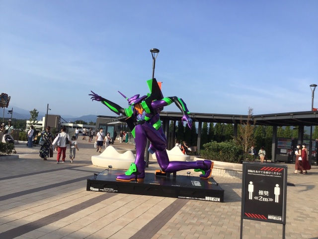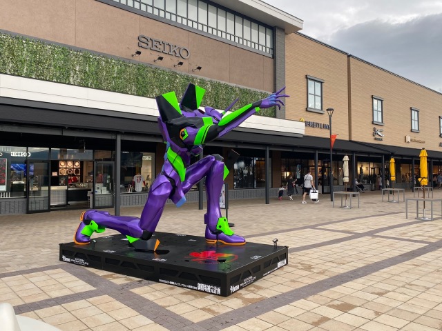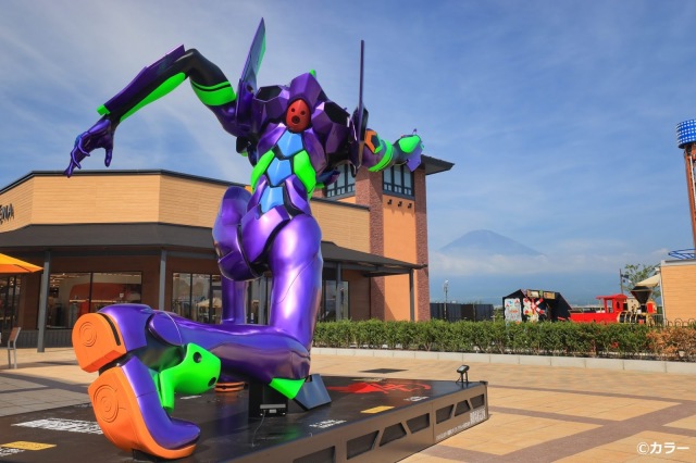 位於神奈川縣的箱根是《新世紀福音戰士》的故事發生地,也因此成為許多粉絲的朝聖地,御殿場Premium Outlets 為響應箱根全面EVA化的活動, 也與《新世紀福音戰士》展開20周年合作企劃,在山側遊樂場設立了3公尺高的初號機,充滿動態感的拋射姿態,看起來就像是把朗基努斯之槍朝著富士山丟,霸氣十足!