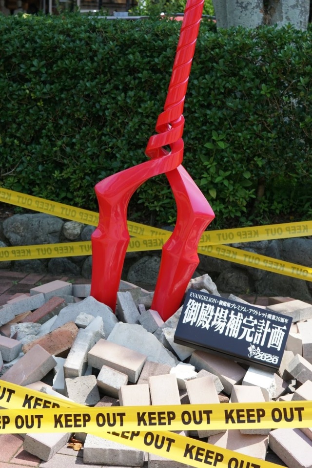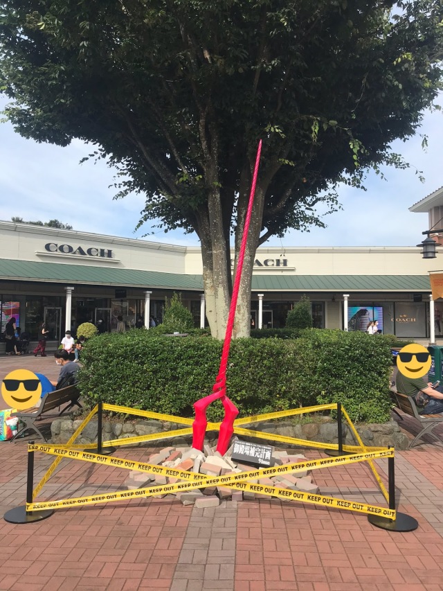 而在御殿場Premium Outlets另一頭的西區GAP前廣場則是插著3公尺高的朗基努斯之槍。(初號機你只能丟到這裡嗎,說好的月球呢?)