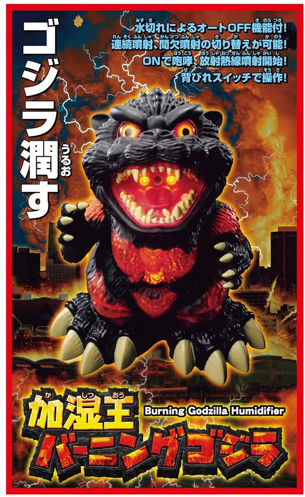 「加濕王 紅蓮哥吉拉」同樣為哥吉拉造型加濕器,這次換上了在《哥吉拉vs戴斯特洛伊亞》 電影中首次登場的紅蓮哥吉拉設計,透過內置的LED燈效,還原哥吉拉雙眼、嘴部、體表都閃耀著紅光的狀態!以 Q 版造型呈現,在可愛中又不失霸氣,只是這次開口不是要噴出攻擊放射熱線,而是能幫你加濕空氣的煙霧~