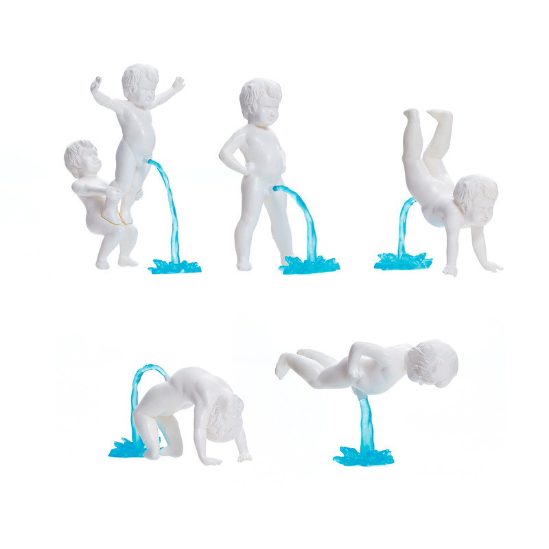 本次的「SHOW!BEN」共有五款,分別是「TITANIC(鐵達尼號)」、「NIOH(仁王)」、「SHACHI-HOKO(鯱)」、「BRIDGE(橋式)」以及「ROCKET(火箭)」,以 PVC、ABS 製作,在約 5.2 公分的尺寸裡打造出用各種令人腦洞大開姿勢如廁的尿尿小童們!尿尿小童本體還細膩地刻畫出髮絲質感與體態線條,真的越看越喜歡,一定是要整套收的啦;另外,擅長塗裝改造的玩具人也可以把尿尿小童改成更具真實感的石像灰、銅像金......等顏色喔~