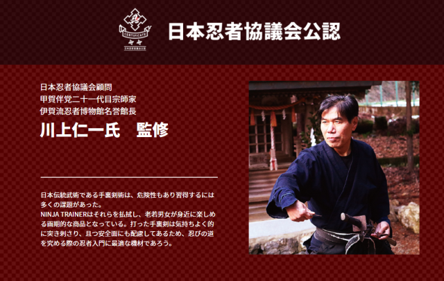有趣的是,《NINJA TRAINER ARCADE》還是由日本忍者協會公認,還特別邀請甲賀伴黨第 21 代宗師「川上仁一氏」來擔任監修,換句話說,本機台雖然是以遊戲為主,但卻也是相當專業的「忍者訓練機」。