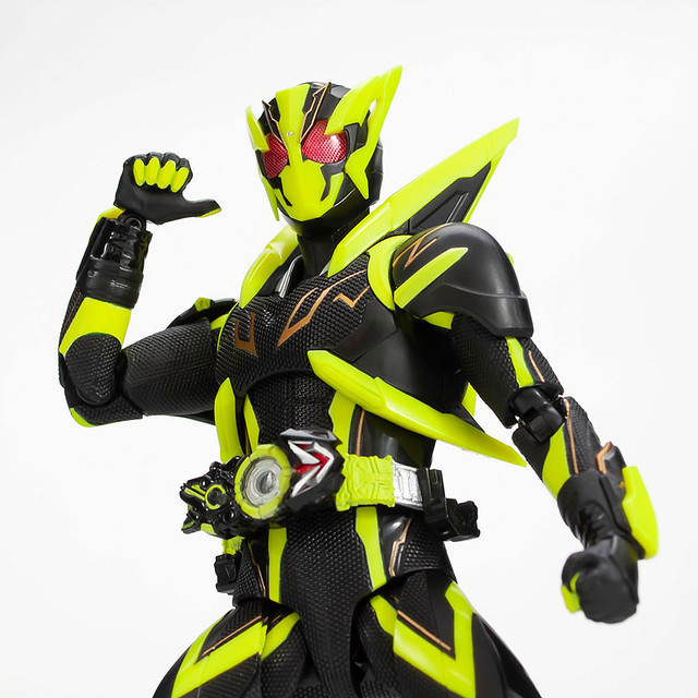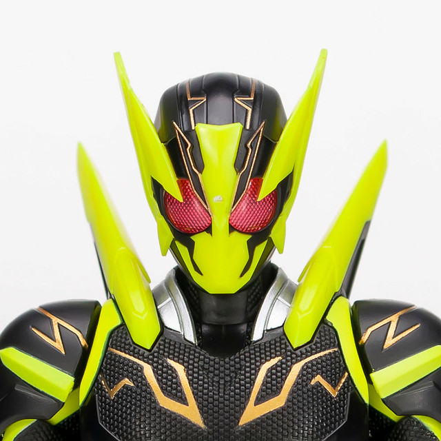 「S.H.Figuarts 假面騎士ZERO-ONE 閃耀蝗蟲」以先前推出的閃耀突擊蝗蟲為基礎修改而來,還原強化前的型態。以細膩造型再現黑色強化服特徵的網紋構造、分佈全身的金色線條,能共用閃耀突擊蝗蟲的手掌零件,與另售的《假面騎士01》系列武器共同把玩。