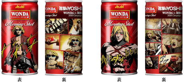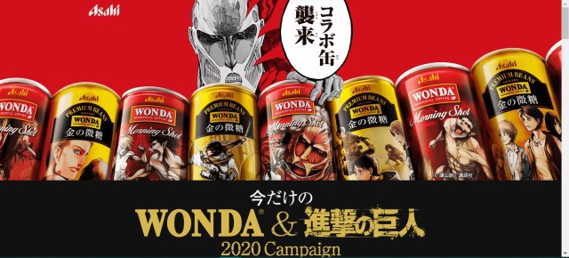 日本 Asahi 朝日公司旗下的罐裝咖啡品牌「WONDA」咖啡,先前與《烏龍派出所》合作,這次將與人氣動漫《進擊的巨人》合作推出「 WONDA × 進擊的巨人」限定聯名包裝,包裝款式多達 20 種外,更推出與日本火紅樂團「X JAPAN」的鼓手兼團長 YOSHIKI 合作的限定包裝可以抽選!還製作了15秒的廣告「進撃のYOSHIKI」篇,於 2020 年 9 月 3 日於日本全國電視播放,也於同日開始販售。