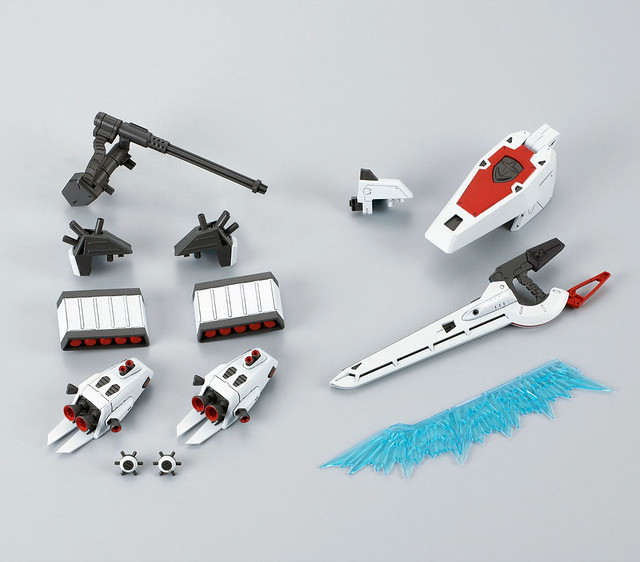 警備.護衛規格 G 型任務背包造型由機械設計師大河原邦男全新設計,使用新規零件製作搭載左肩的大型盾牌,以及可變形劍型態與槍型態的主武裝「複合型光束武器」,並附上劍型態的大型光束刃特效。兩種裝備皆能使用配件中的水貼紙追加機身標誌等細節。