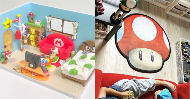 讓人驚豔的是,除了將Switch掌機放大比例做成電視機Size外,左右兩側,也就是手柄的部分,還特別製作成可以放置物品的雙格櫃,而這位喜愛瑪利歐的推主,則是將長期買來的Switch遊戲片,以及瑪利歐玩具跟娃娃放在紅色格子裡,除此之外,這個房間裡也充滿了瑪利歐遊戲中出現的可愛角色與周邊商品,放眼望去簡直超級可愛!