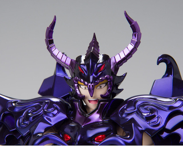 這款聖闘士聖衣神話EX 的原色版拉達曼迪斯,以之前在漫畫彩色稿的原作設定做為基礎參考,將過去原本的黑色主視覺,改以紫色做為主色,同樣有四種表情零件可以替換,另外,這款新版的拉達曼迪斯,在人物素體的部分,導入了與冥王哈迪斯同樣的「EX Metal 素體」,在四肢關節的部分,採用合金材質,讓活動更為穩固不會鬆脫。