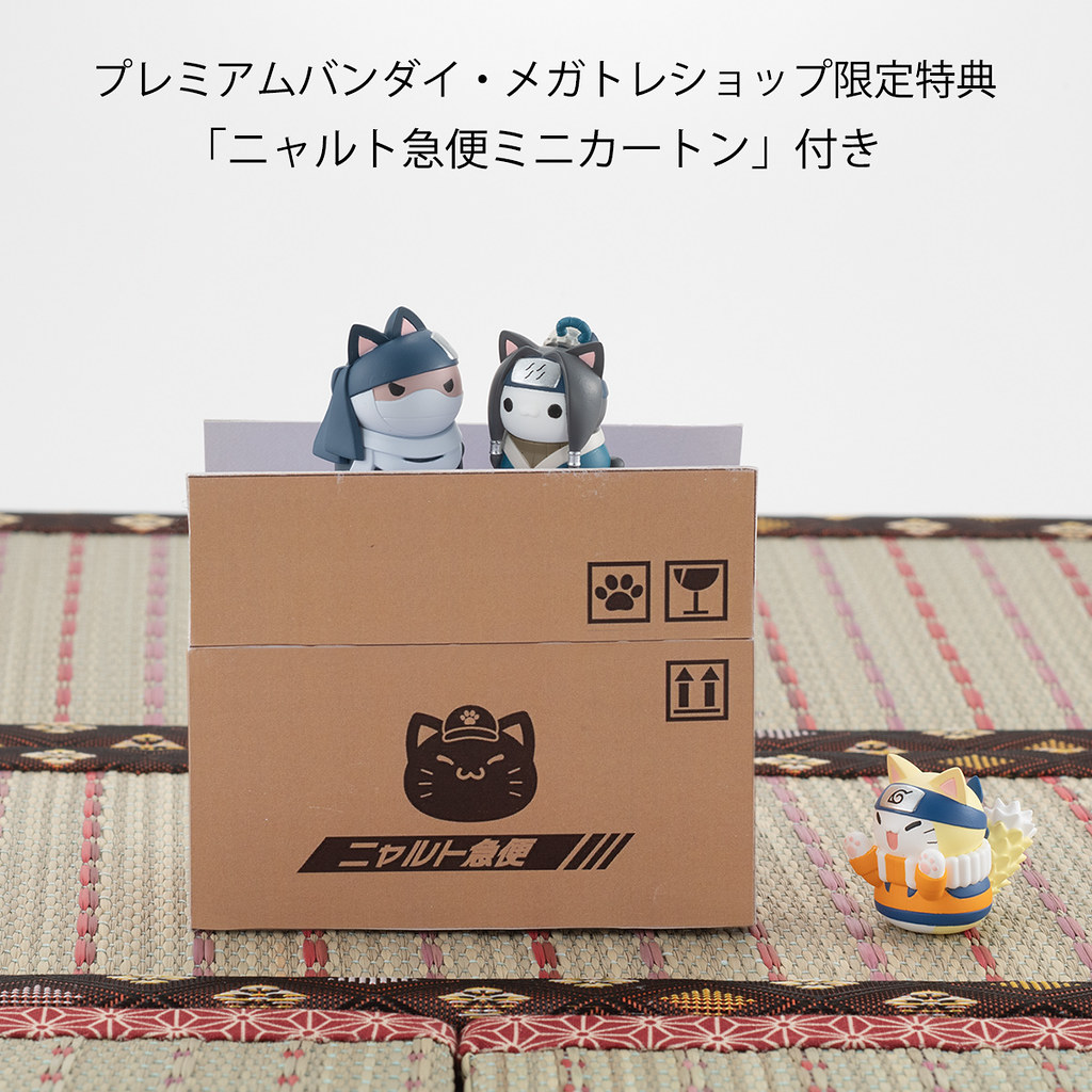 每款皆設計為約3公公分的大小,變成貓咪的模樣十分可愛,可以當桌面擺飾使用,不同角色搭配也能玩出多種趣味場景。購買限定特典可以獲得「喵影宅急便」紙箱,只在 Premium Bandai、Megatre Shop 限定販售!變成貓咪的角色們真的非常討喜可愛,喜歡火影忍者的玩具人不要錯過啦!