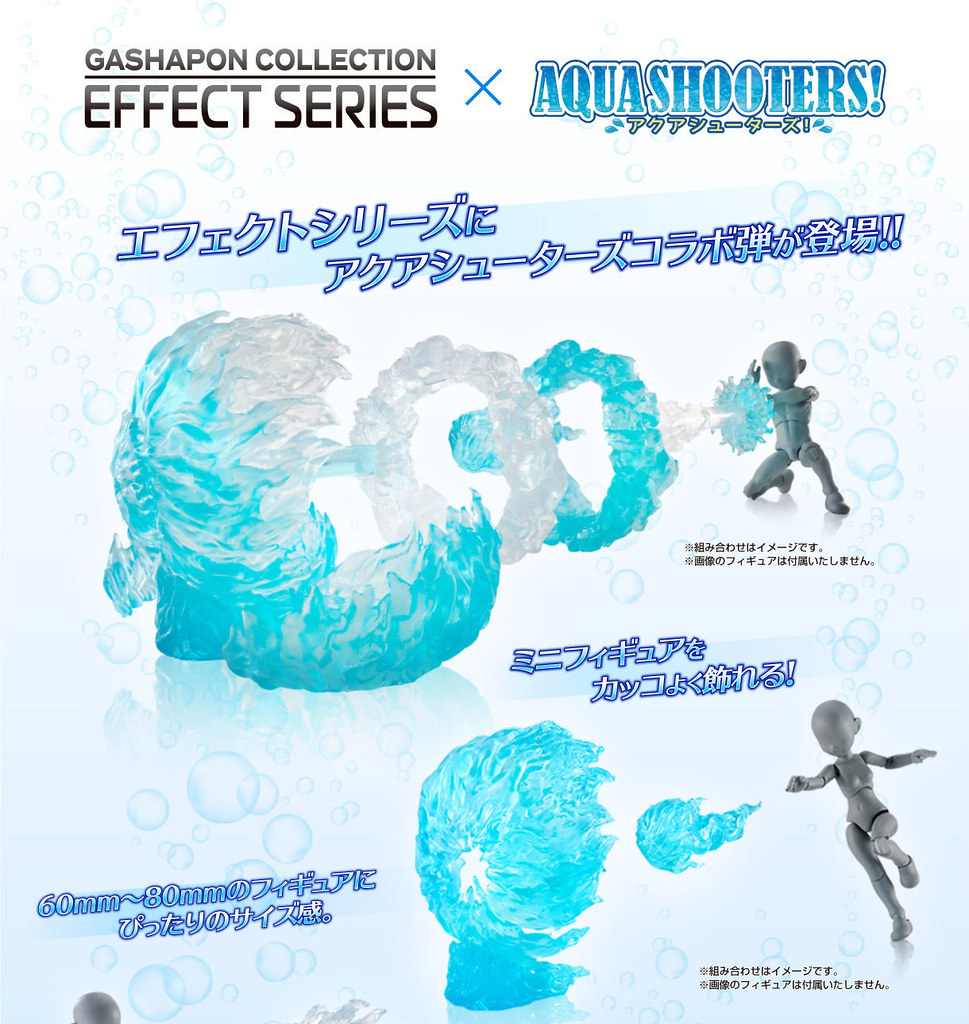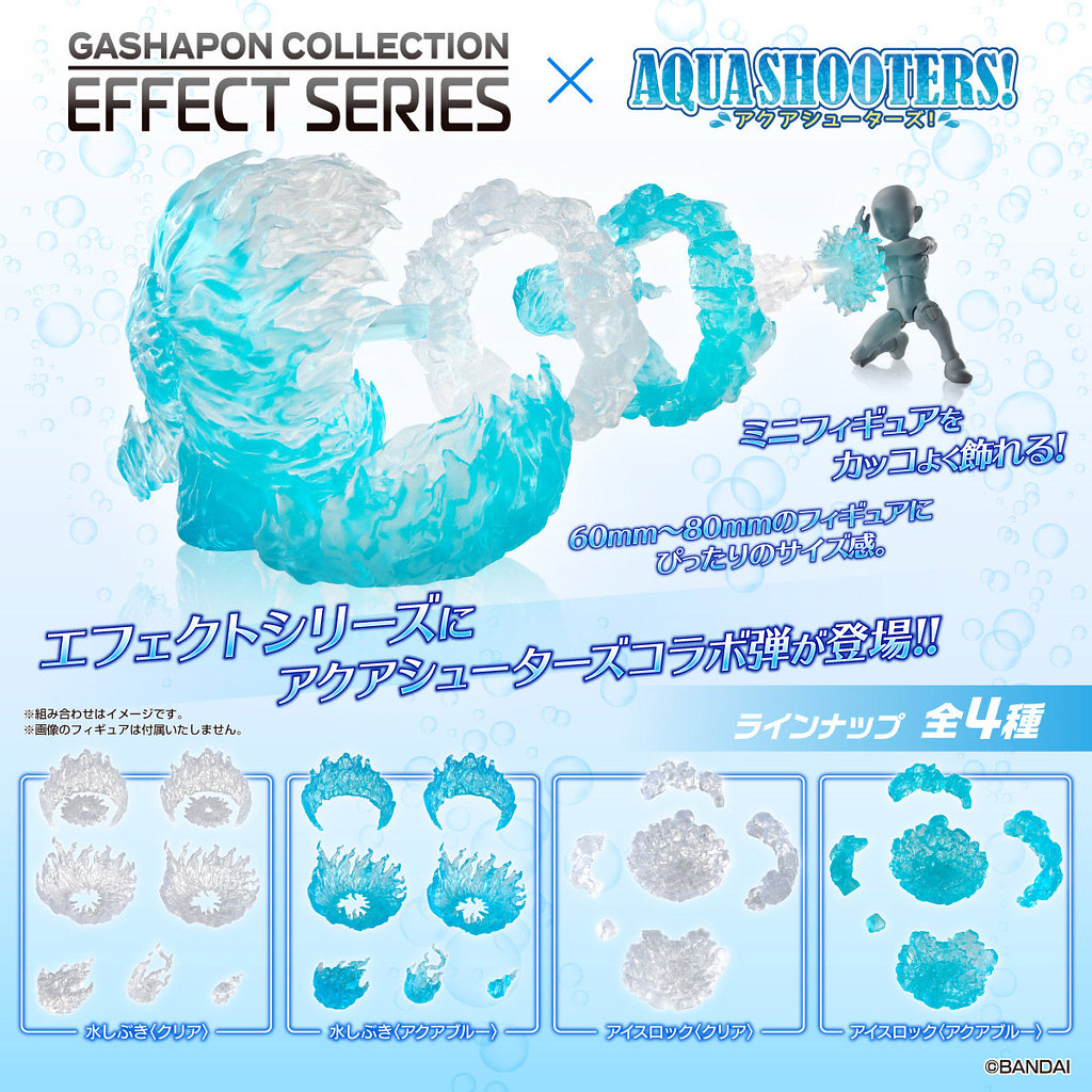日本BANDAI萬代玩具公司(株式会社バンダイ)旗下轉蛋事業部 GASHAPON 在發行了轉蛋專用的「GASHAPON COLLECTIONS 特效件第一彈 火焰篇」與轉蛋支架等轉蛋輔助特效件後,又將與 AQUA SHOOTERS!合作,推出「GASHAPON COLLECTIONS 特效件 x AQUA SHOOTERS! 」一共有四種款式,一轉參考售價為 300 日圓,於 2021 年 1 月開轉~
