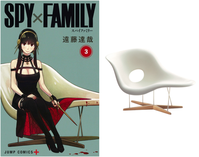 ▼第三卷單行本封面中出現的椅子同樣也是榮獲紅點設計獎的「La Chaise」,由美國夫妻檔設計師 Charles & Ray Eames 所創作。