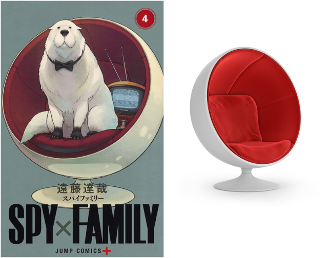 ▼第四卷單行本中出現的則是1963年芬蘭設計師Eero Aarnio創作的「Ball Chair」,是小編最愛的家具設計,而這張設計椅同樣也是紅點設計獎的得獎作。