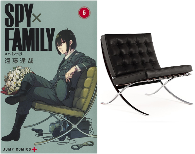 而《SPY×FAMILY間諜家家酒》這部漫畫,厲害的或許不只是它風趣精彩的故事,連單行本封面的繪製,更是凸顯劇情中這戶「間諜家族」(或該說是作者遠藤達哉)的品味,例如在第一卷單行本中,可以看到主角洛伊德·佛傑所坐的這張沙發椅,就是出自於法國設計師勒·柯比意(Le Corbusier)在 1928 年推出的「LC2」沙發單椅。