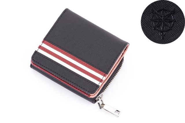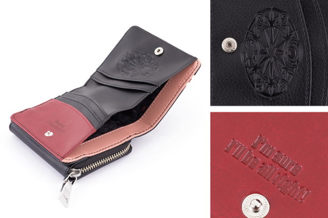 一樣以劇中的學校特色為設計靈感,紅白條文配上黑色看起來典雅又容易搭配,打開短夾內部,印有小櫻經典的「絕對沒問題」無敵咒語標語。內裏與包包一樣也有特殊的花紋內裏,十分適合女生使用。