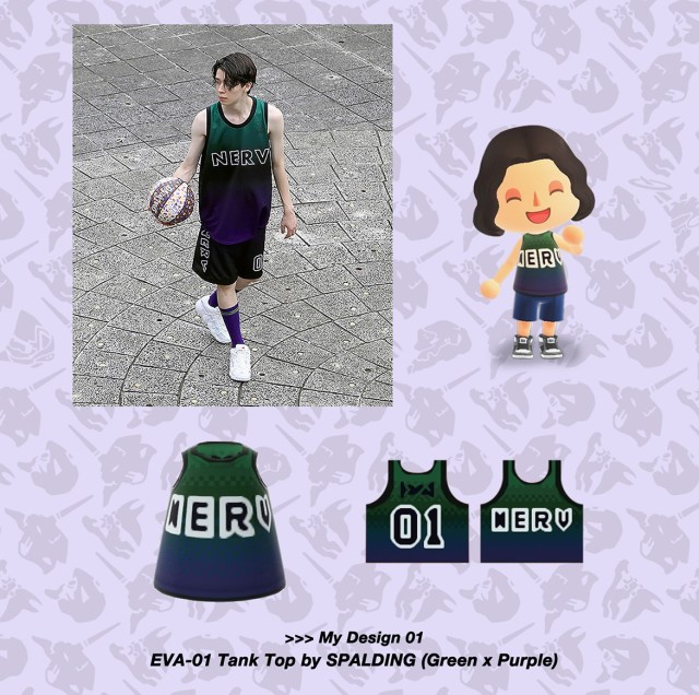 此次RADIO EVA x SPALDING系列服飾將作為在《集合啦!動物森友會》「我的設計」中上架的第一彈商品~第一彈一共推出三款服飾,各別有兩種顏色,忠實將服飾設計還原,開放讓玩家們下載!