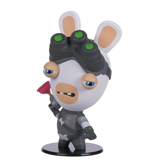造型百變的瘋兔這次扮演成《縱橫諜海》系列主角山姆 · 費雪,身穿中情局特工的緊身衣與夜視鏡,造型幾乎和山姆一模一樣,卻難以掩蓋瘋兔原本滑稽又可愛的造型,更把他對馬桶吸盤無法自拔的愛呈現在槍上!