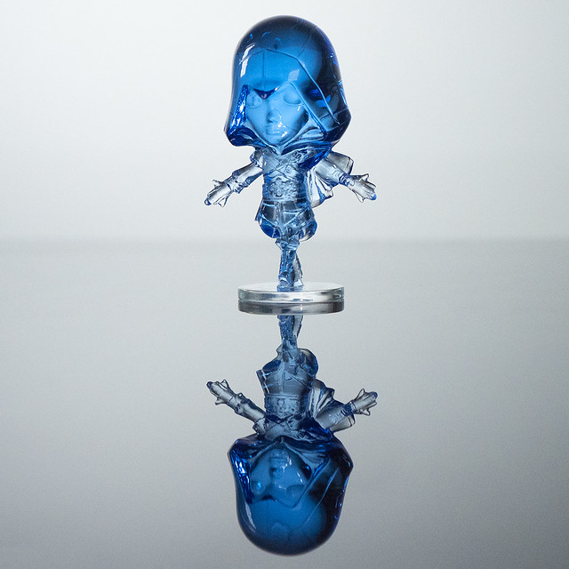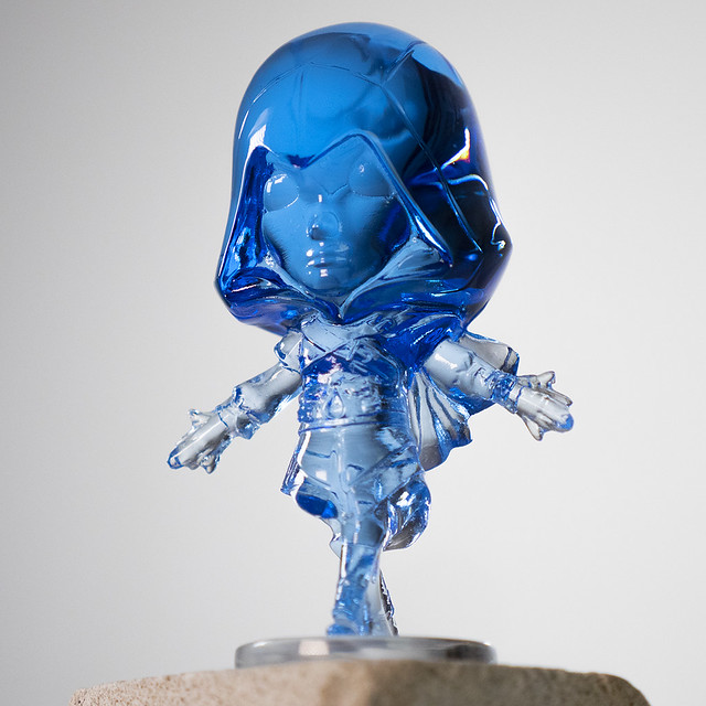 UBISOFT HEROES 埃齊歐以傳奇的紅白色刺客兜帽造型製作,再現臉部疤痕、無聲無息中最為致命的雙袖劍等細節,並以彷彿準備信仰之躍的躍動姿勢呈現。