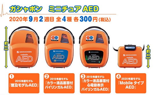 常常在路上看到,但實際用過的人寥寥可數「自動體外心臟電擊去顫器」簡稱AED (Automated External Defibrillator)。為了幫助民眾理解這個每個人都有機會使用的救命道具萬代推出轉蛋版迷你AED,不要看它只是個小模型,裡面可是再現了真正的AED的配置,連使用說明都一併附給你,轉一次300日圓。