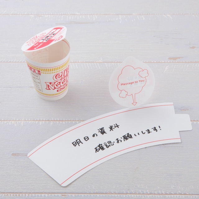 小編還在唸書的時候,最喜歡在上課的時候互傳小紙條,而且為了不被課堂上的老師發現,還要使用各種奇怪的招數「丟過去」、「扔過去」、「傳過去」,而日清食品也很可愛地做出了日清泡麵造型的留言紙條,在寫完你想要傳達的訊息後,就將它捲起來,就是一個小小可愛的杯麵造型了!