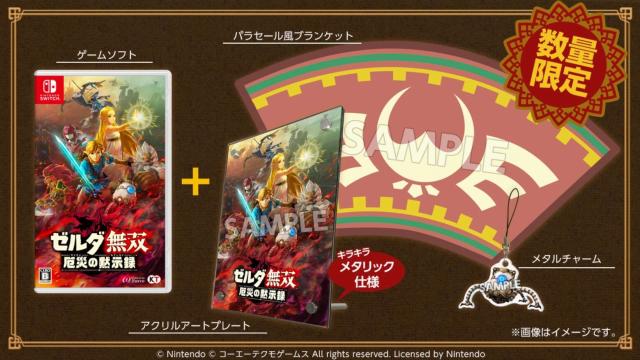 遊戲公司光榮特庫摩根據本傳《薩爾達曠野之息》的敘事,以前傳展示百年前「大災難」的磅礡戰爭做為《薩爾達無雙 災厄的默示錄》,將會於 11 月 20 日在Nintendo Switch上發售,而目前除了開放預購外,日本官方也正式公布特典樣品,總計實體收藏價格為16720日圓(台幣:4652元),另外也有數位預約特典。