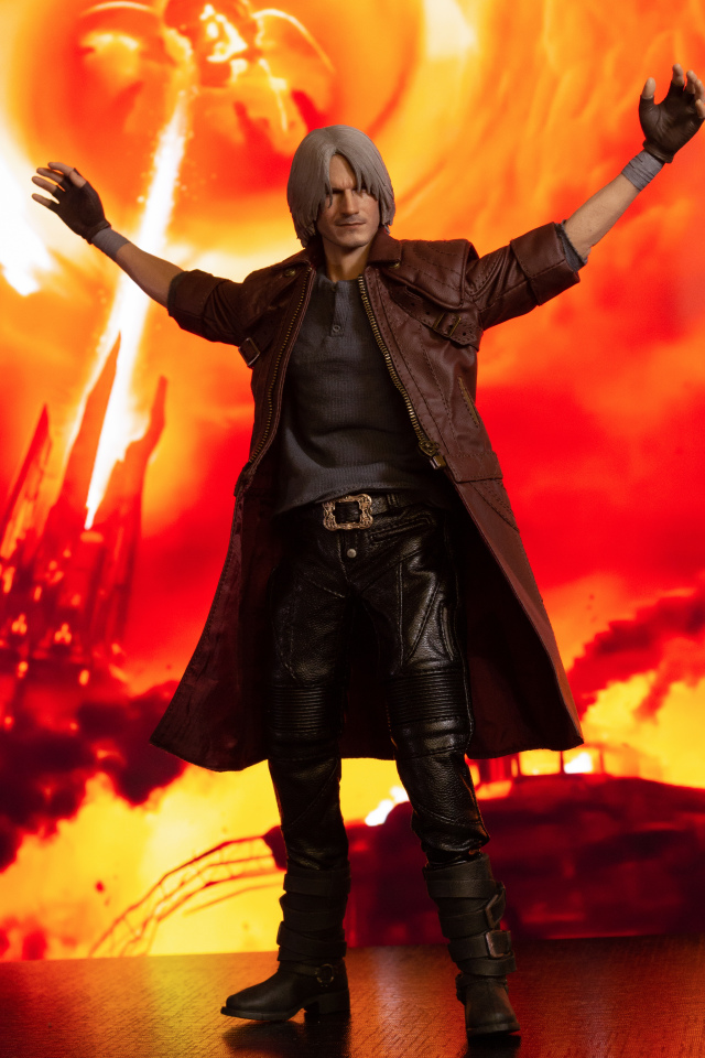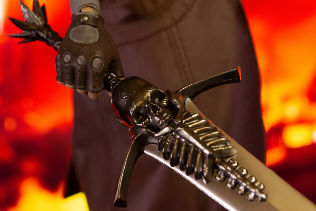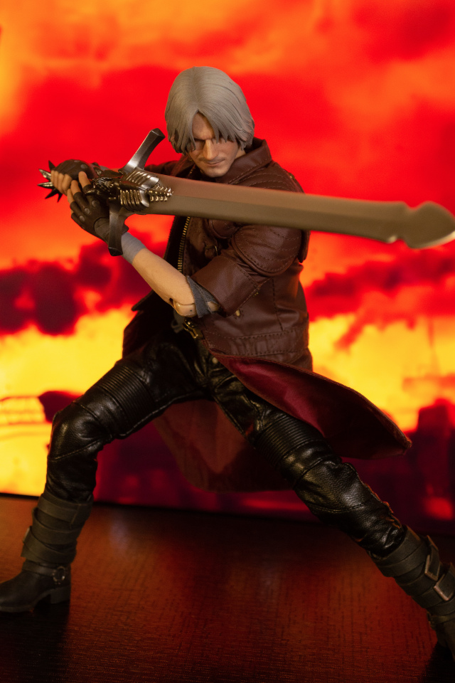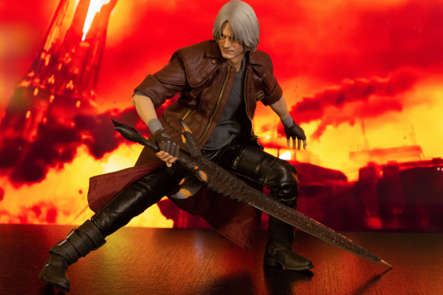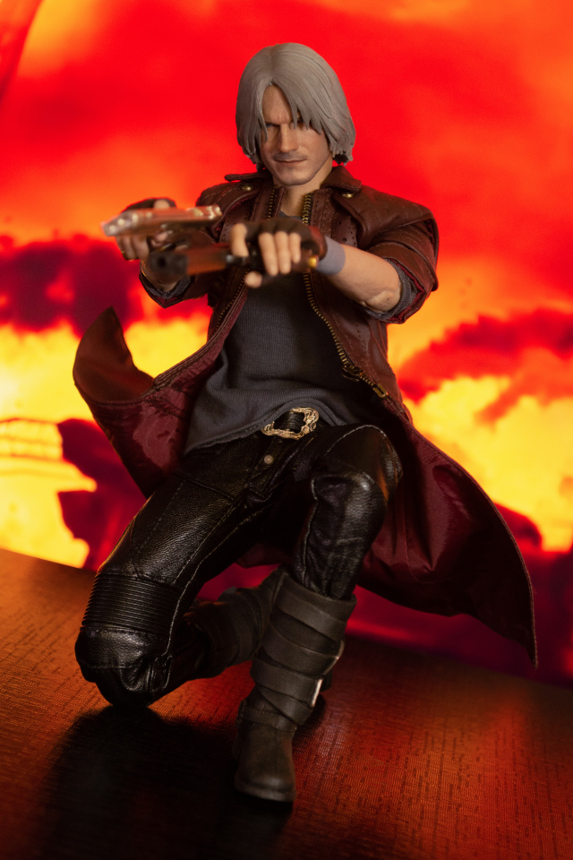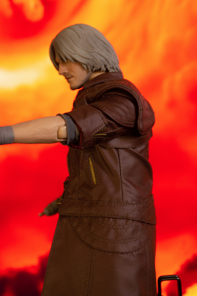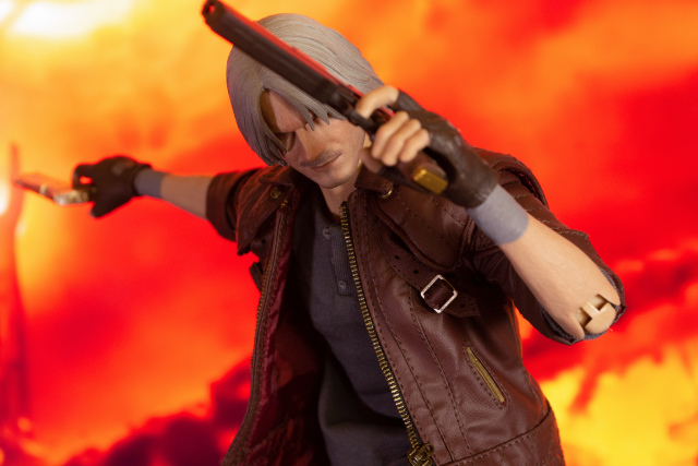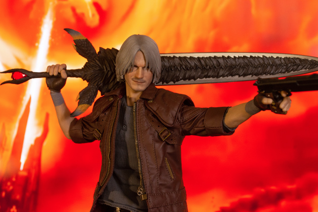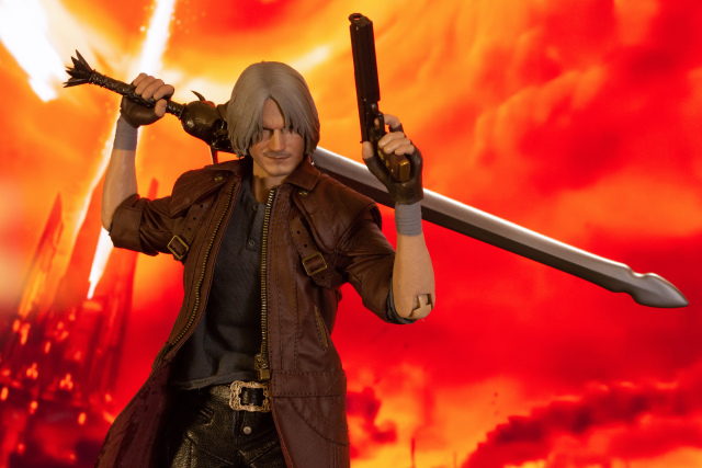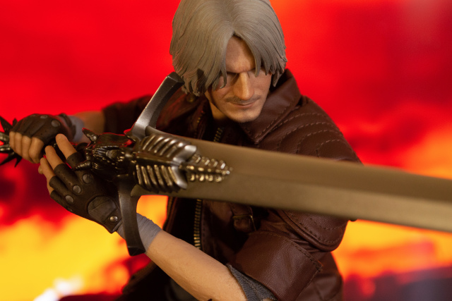 話說當初遊戲宣傳影片出來的時候丁叔好像引起不小的討論,有人嫌他變太老,而我個人是超喜歡鬍渣大叔啊,所以知道Asmus要推出五代但丁的時候我真的是非常的期待。不過他們尼祿發貨的時候我真的有點嚇到,那面癱真是嚇死我。慶幸的是但丁的頭雕個人覺得做得非常的成功,完全有抓到丁叔放蕩不羈的銳利神韻。