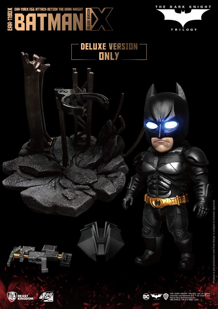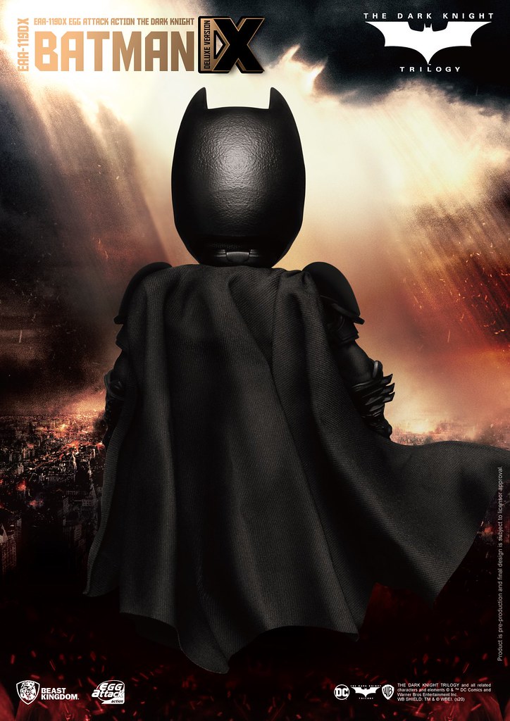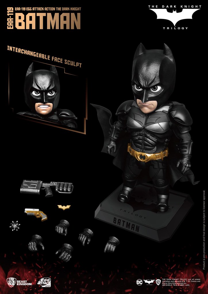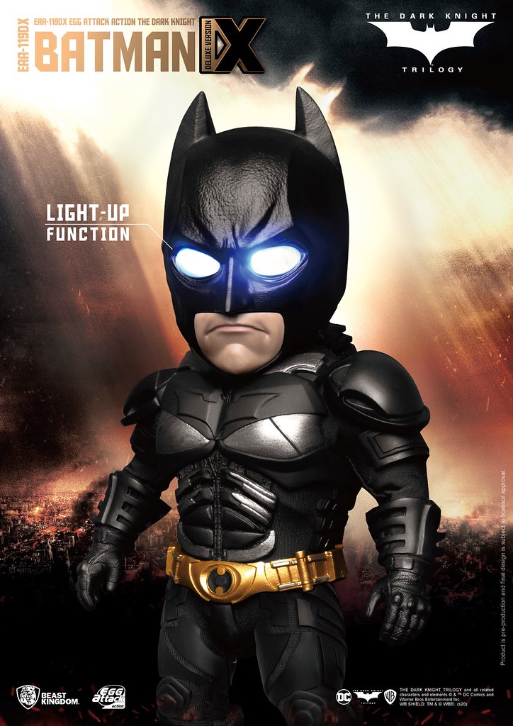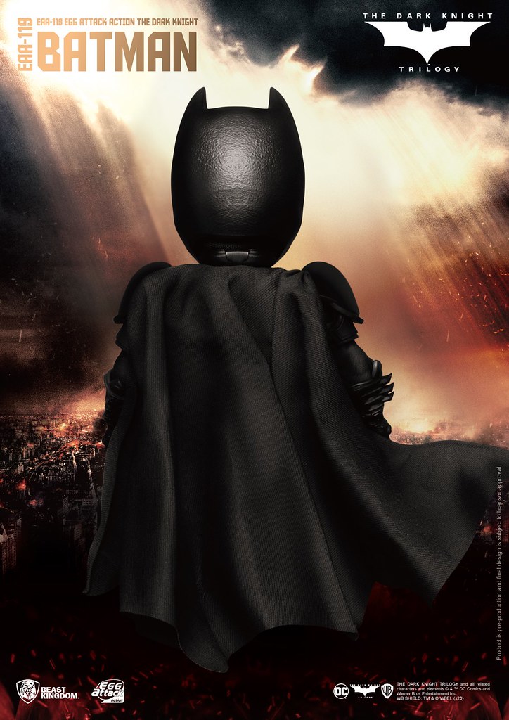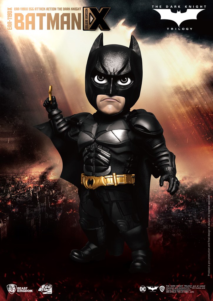 由台灣玩具品牌野獸國(Beast Kingdom)發行,以獨特 Q 版造型為賣點的「Egg Attack Action(EAA)」系列於昨(14)日發表了出自《黑暗騎士》的可動人偶新作「蝙蝠俠」!並會同步推出普通版與豪華版,預計將於 2021 年第一季發貨。