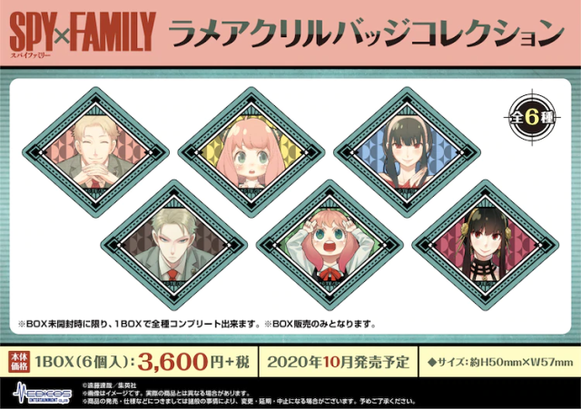 本次將會以「大家一起選的 安妮亞最佳表情投票」中的第一名表情「呵」為主要圖樣當作商品的LOGO,本次共會推出 4 個周邊商品,分別是 T恤、托特包、筆記本型手機殼皮套,還有洛伊德一家的壓克力徽章,共 6 種款式,家中的每位角色各 2 種表情,可以說是非常可愛。