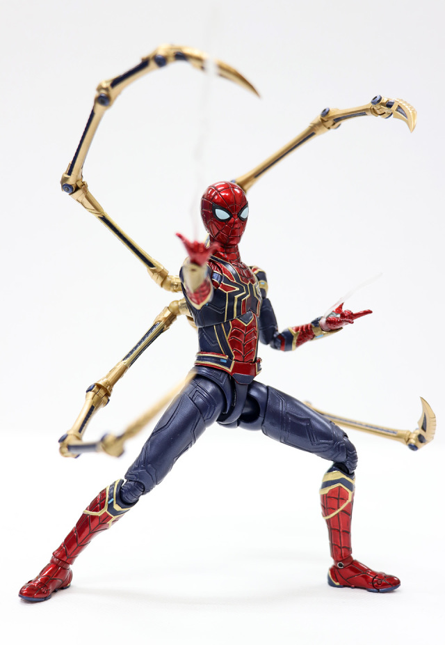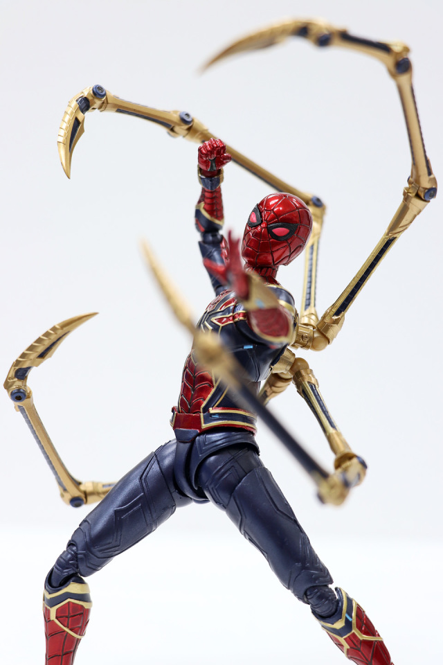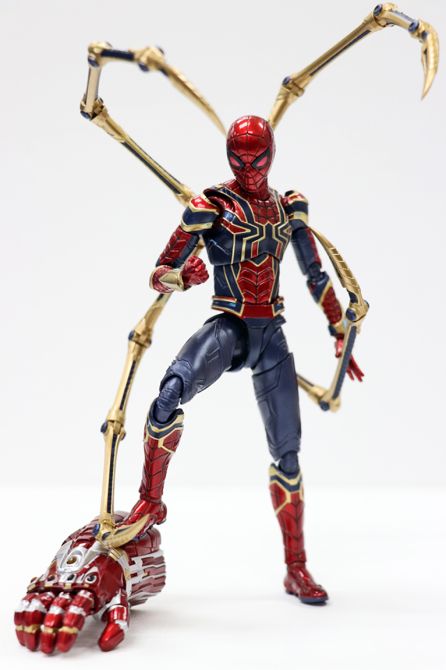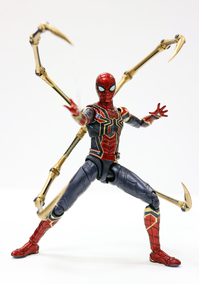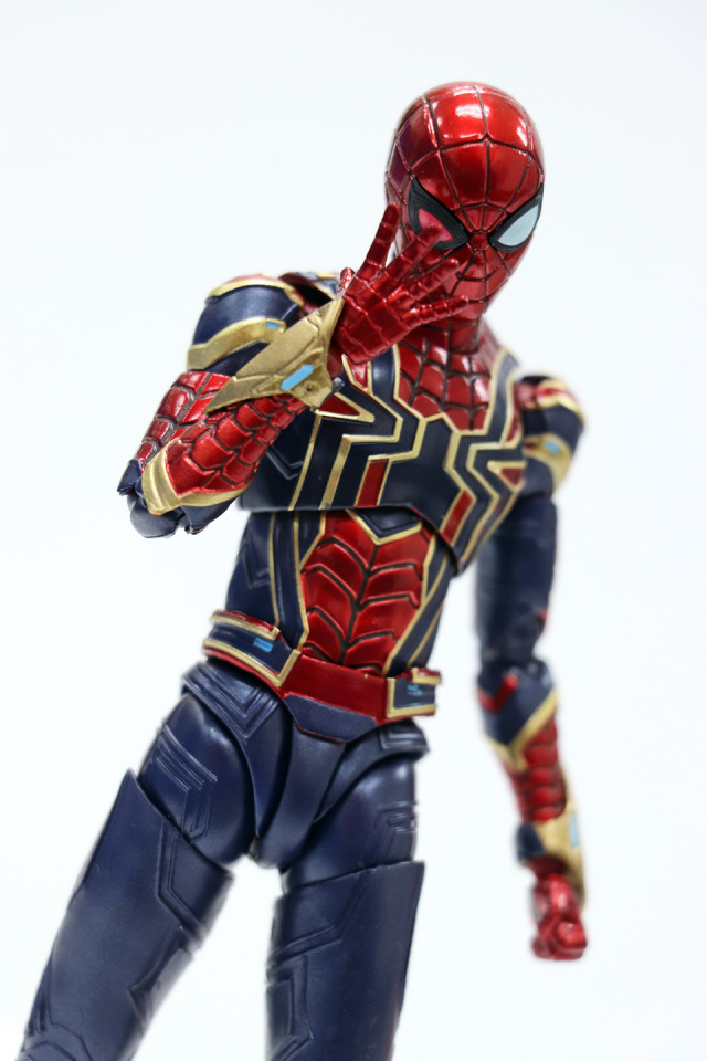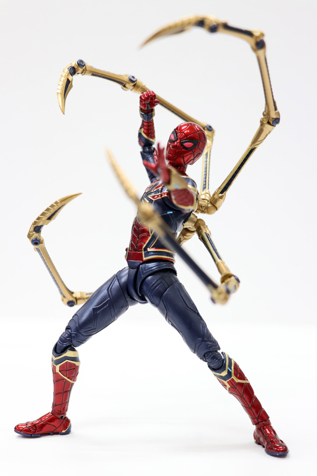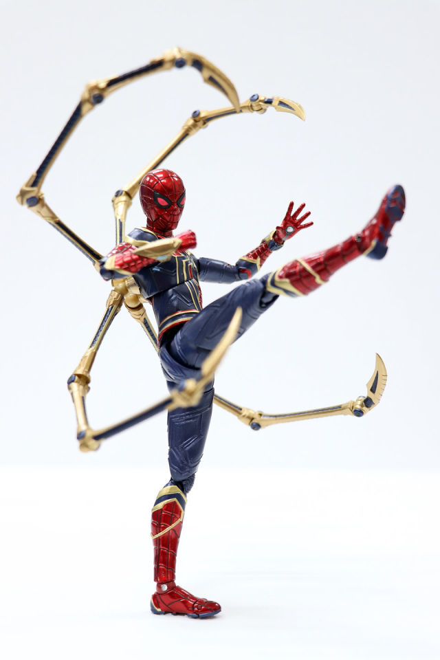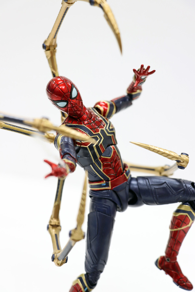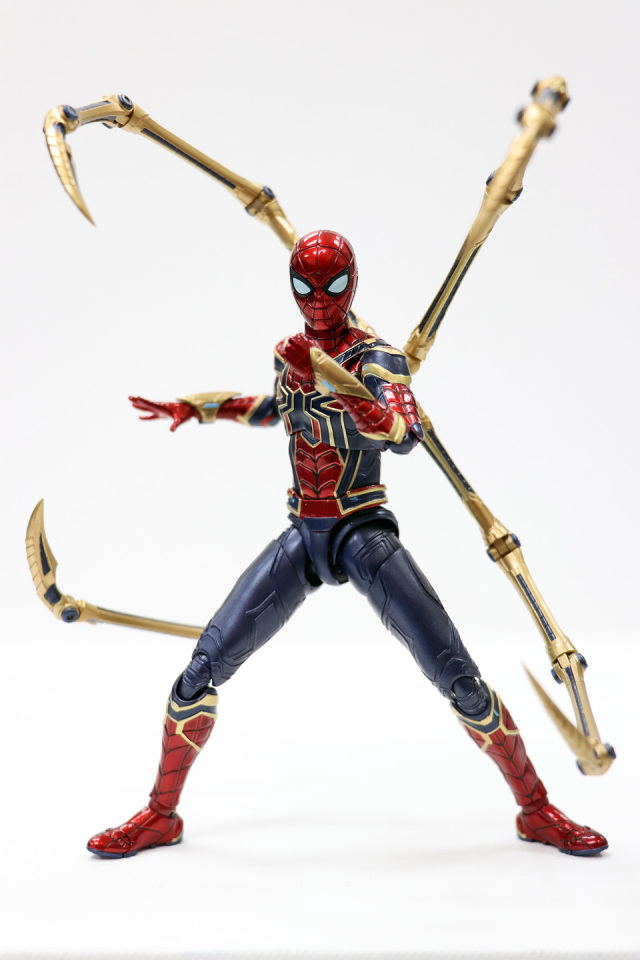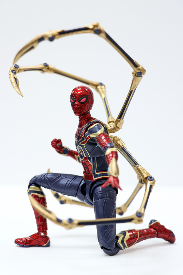 本體主要以紅、藍及金色的金屬色塗裝,故外型可以用 "亮麗" 來形容。可動性一貫的高,加上不同形態的蜘蛛絲等特效配件,令他的可玩性提高至另一層次。4 支金色機械蜘蛛爪配件都擁有4個活動關節,能將《復仇者聯盟》中的各動作名場面忠實重現。整體上色不俗,QC 亦佳,故很難在其身上扣減分數。當然,換成金屬腳掌的話就完美了!