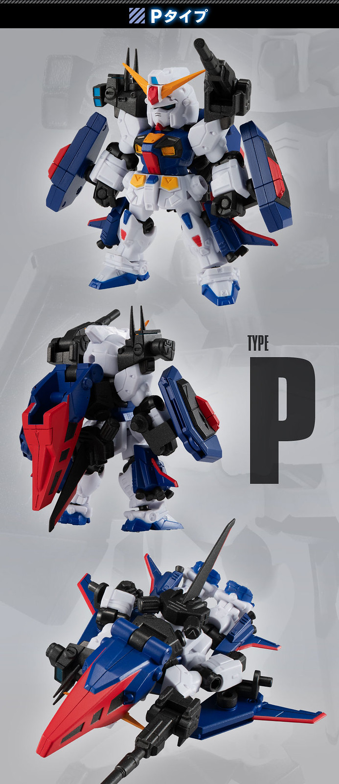 P 型任務背包為可單機進入大氣層的大氣層突入規格(PLUNGE),能運用增設裝甲變形為近似 Z 鋼彈的穿波機(Wave Rider)型態,使機身形成舉升體降低阻力,並具備良好的耐熱性。雙肩各自搭載了可動式光束加農砲、火神砲進行防身。