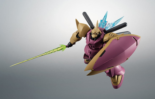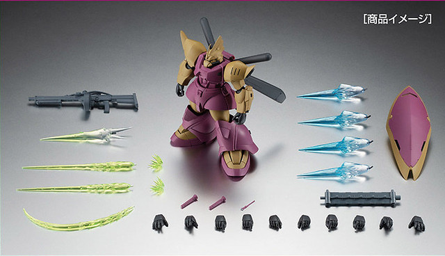 這款 ROBOT 魂商品將這架西瑪的愛機實體還原,包含外表主要的紫色視覺裝甲,配件的武器有前述提到的大型光束步槍、以及光束軍刀和大型盾牌,特效配件種類多,除了背後的推進特效件,特別為大型光束步槍設計的特效件也附上,以及手部發射機關炮的特效件都有,另外還有五組替換手部配件,整體內容相當豐富喔!
