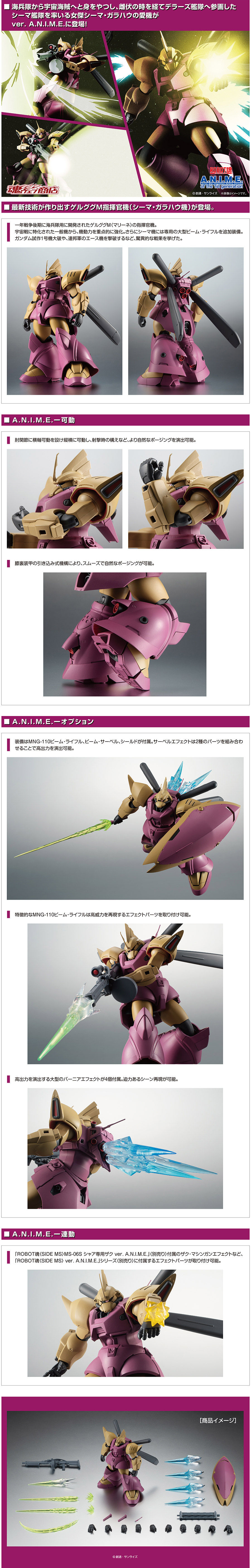 由日本萬代所推出的可動機器人玩具商品「ROBOT 魂」之「ver. A.N.I.M.E.」系列,要推出在《機動戰士鋼彈0083:星塵回憶》中,由西瑪艦隊的主帥「西瑪・卡拉豪」駕駛的「MS-14Fs 傑爾古格 M 指揮官機 ver. A.N.I.M.E.」。預計於 2021 年 2 月發售。
