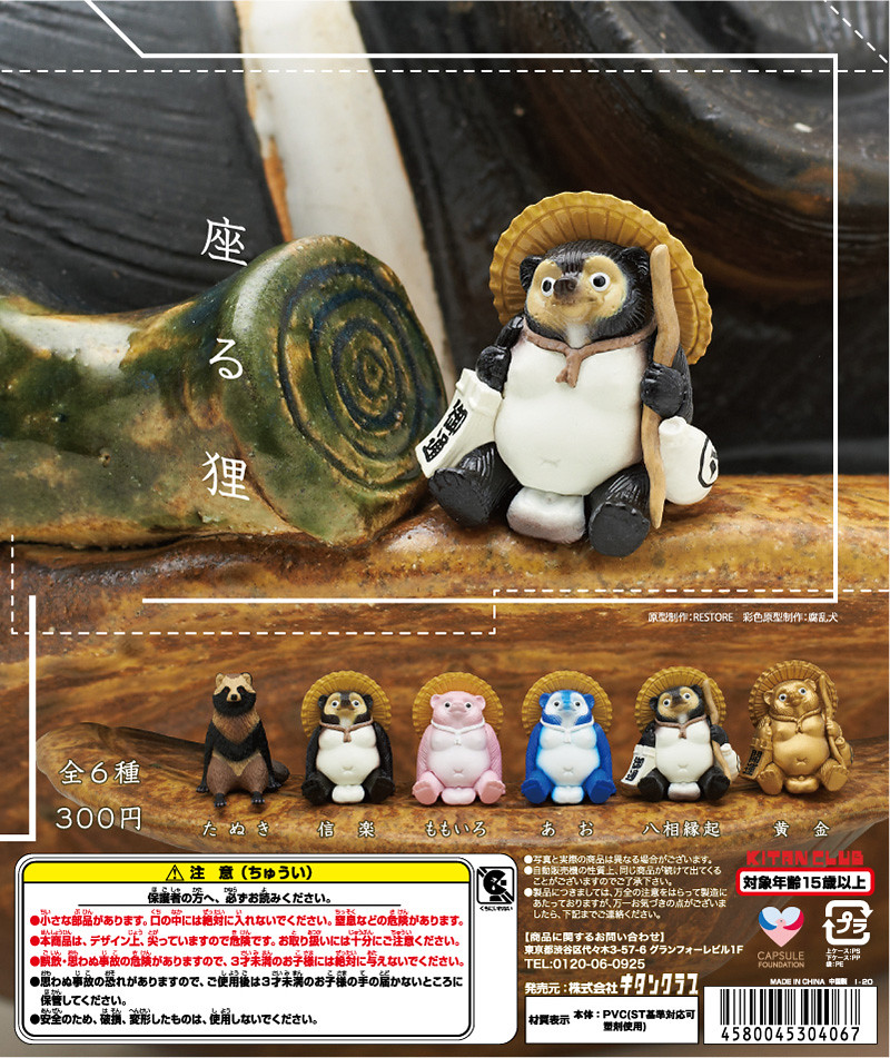 日本轉蛋廠牌奇譚俱樂部(キタンクラブ)旗下的「坐著系列(座るシリーズ)」,在推出日本代表性遺物坐著土偶後,這次以日本民俗傳說「狸貓神」為主題,推出系列新作:「坐著的狸貓」(座る狸)轉蛋,一轉參考售價為 300 日幣,預計將在 2020 年 10 月發售。