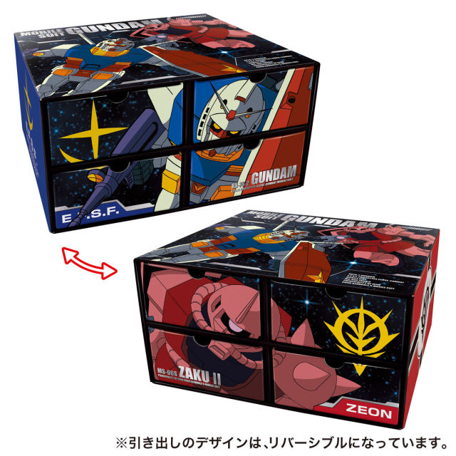 這款最吸引人就是可替換式的收納盒設計啦!以類似鋼彈模型盒裝的設計,下方設計的抽屜有鋼彈 / 紅色薩克兩種可以選擇,作為生活小物收納的選擇絕對是充滿鋼彈魂!