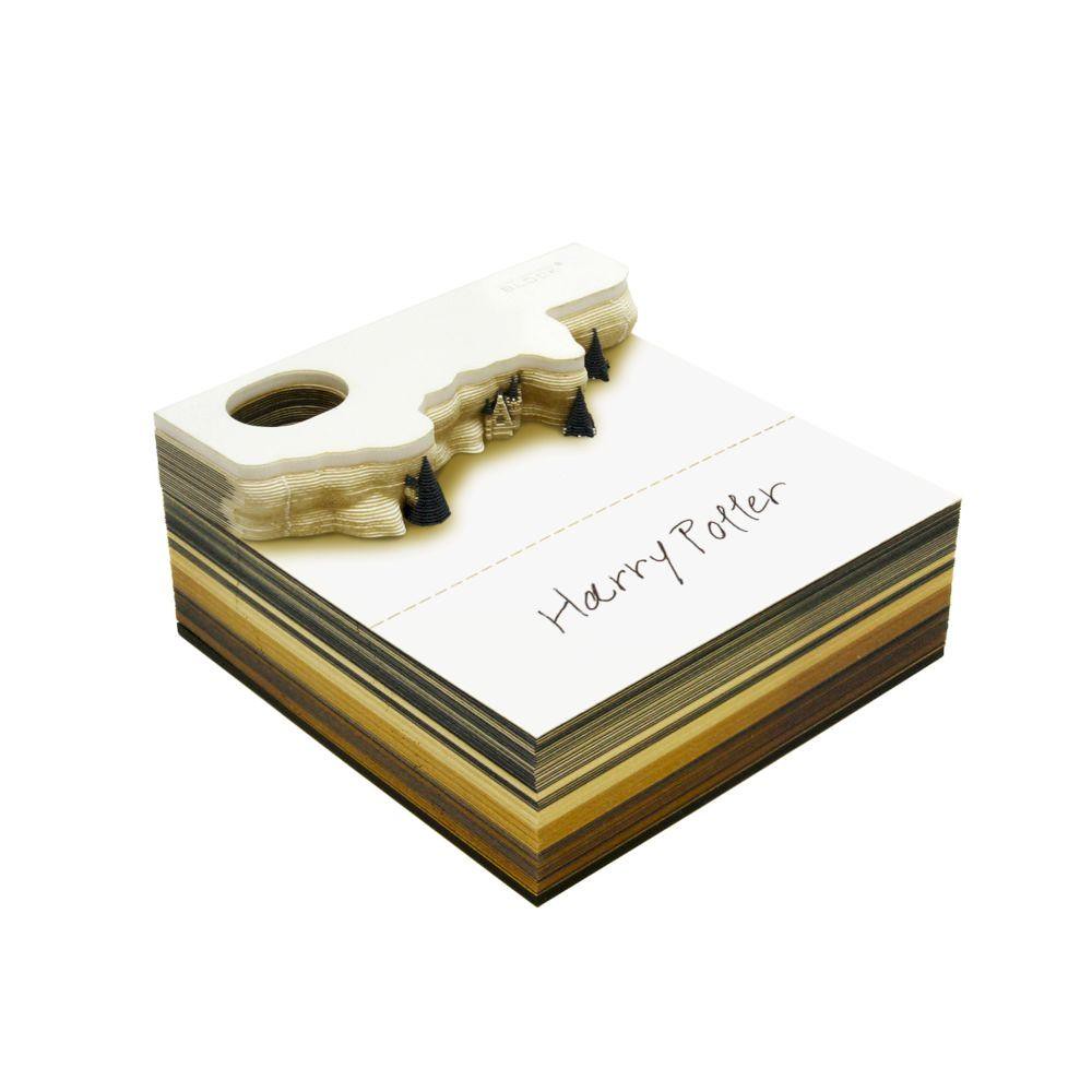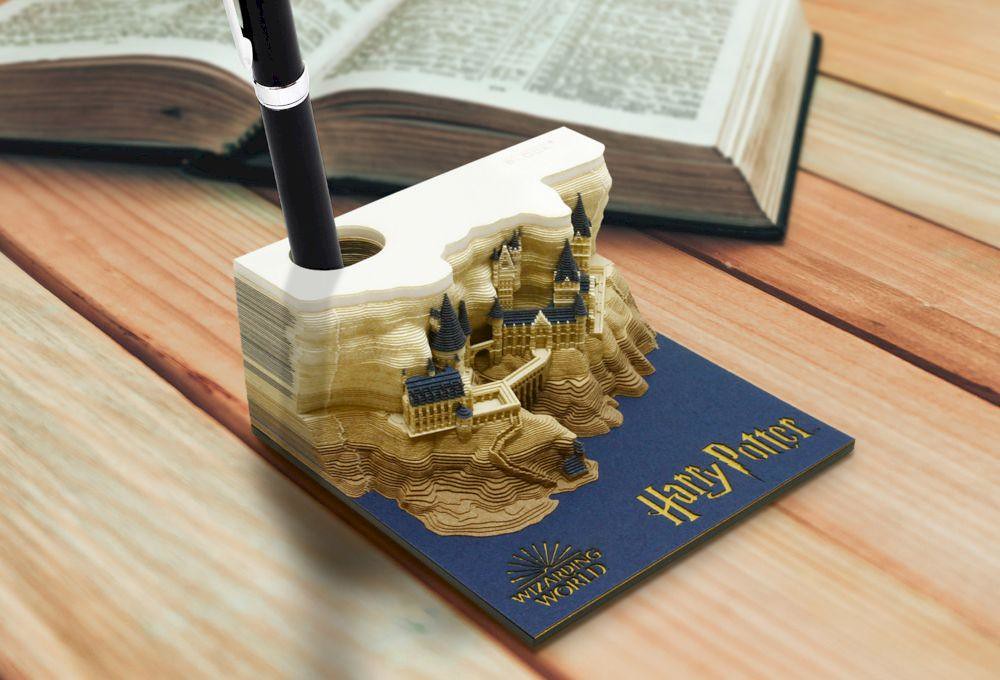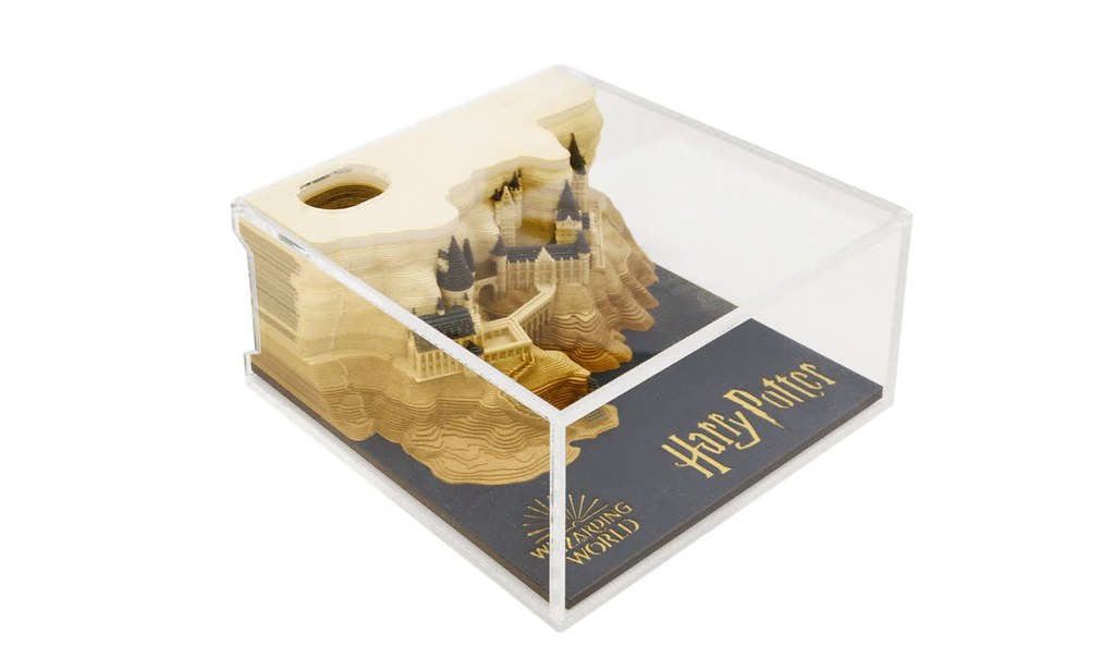 這次推出「哈利波特 OMOSHIROI BLOCK 霍格華茲城堡」,原為尺寸為寬85 x 深82 x 厚43mm,的便條紙,總共有150張,隨著便條紙愈撕愈多,霍格華茲城堡的塔頂就會慢慢露出來~精準又細膩地將複雜歐式古堡以紙雕還原,刻工非常仔細,並有精美的分色,處處顯現出日本職人的巧思。最後可以作為藝術裝飾品擺飾,也能當成筆架;雖然因為是聯名限定商品所以價格不便宜,但值得哈利波特迷收藏一波!