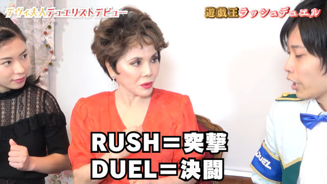 讓人一開始感到訝異的是,在指導方在簡單介紹遊戲王時,黛薇夫人突然說了一句「你知道RUSH跟DUEL的差異嗎?RUSH有突擊的意思,而DUEL代表了一對一的決鬥。」,讓在場的人開始感受到黛薇夫人的有備而來。