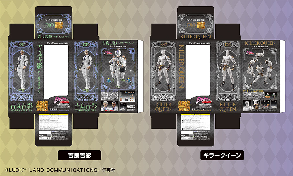 推出「超像可動」這個受歡迎人氣系列玩具的日本玩具廠商 MEDICOS 公司,將要再次販售之前曾經推出過的《JOJO 的奇妙冒險》之「第四部-不滅鑽石」的最終敵人「吉良吉影」,以及其替身「殺手皇后」的包裝更新版。與前幾次相同,除了兩隻一起的組合 SET 販售之外,也會以單隻方式販賣。