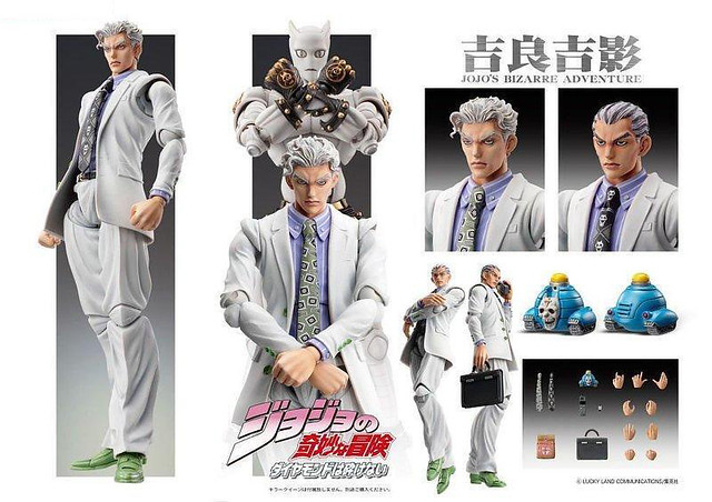 MEDICOS 的「超像可動」系列推出過非常多的《JOJO 的奇妙冒險》的角色,從第一部到第八部都有,這次重新販賣的吉良吉影和殺手皇后,是以第一版的灰白色款做為再次販賣的對象,而不是 SECOND 的紫色版。之前沒有買到的朋友,可以好好利用本次的再販機會喔!