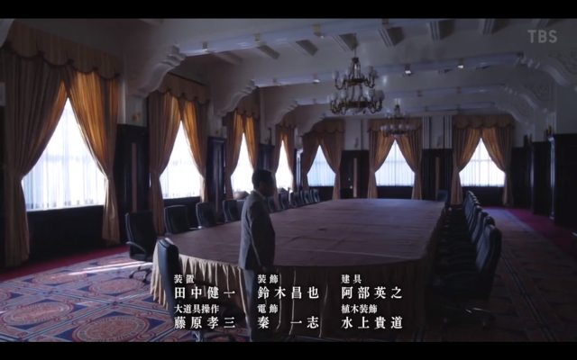 珍貴曝光的影片可以看見香川照之的翹臀外,更可以發現董事會桌底下原來充滿著戲組的使用道具,然而卻像是虛空百寶袋一樣充滿未知。