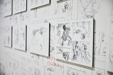 ▼ 原畫的世界 2 - 天花板上掛上從天而上的巨人原畫。