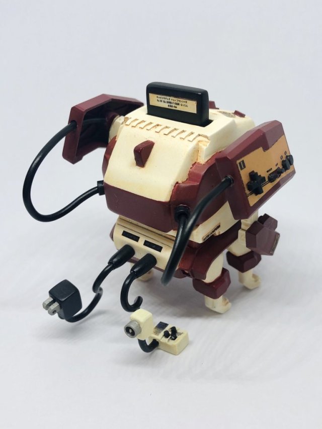 雖然說是改造,實際上這些可愛的遊戲機器人,都是以其他組裝模型來做參考的,例如說紅白機的原型其實就是「陸上自衛隊07式戰車」,你可以看到原本左右肩胛的部分直接改造成紅白機的專屬搖桿,讓人覺得可愛的是,搖桿還真的可以任意拿起,相當帶感。