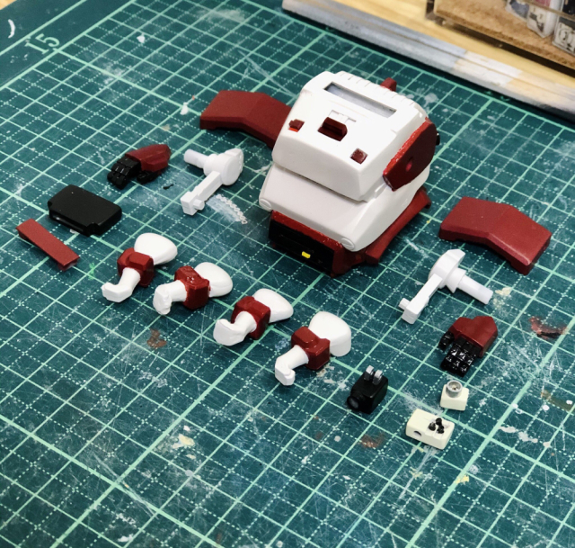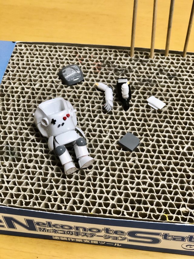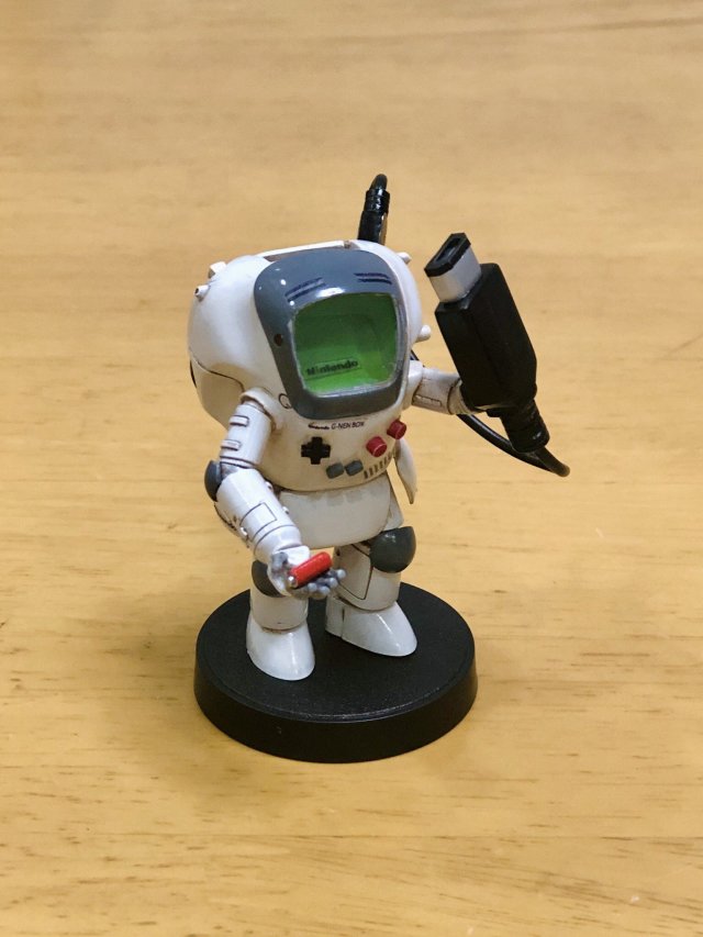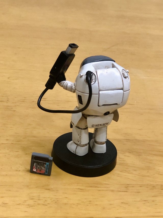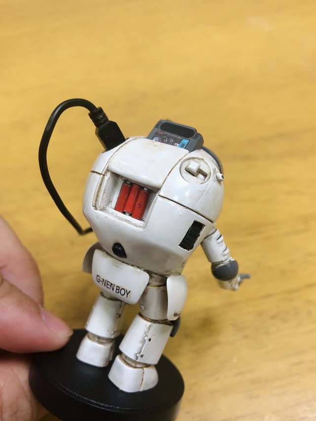 同樣Game Boy的部分,則是以海洋堂的「ガチャーネン」進行塗裝,駕駛艙改成了遊戲機的螢幕,左右手分別添加了電池與插頭,細節的舊化處理也相當地精細。