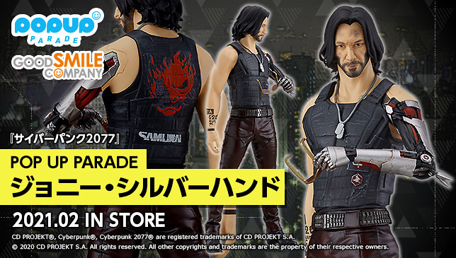 日本GOOD SMILE COMPANY 旗下的平價塗裝完成品系列「POP UP PARADE」,將推出話題遊戲《電馭叛客2077》為主題的「POP UP PARADE 強尼・銀手」無比例PVC 塗裝完成品,參考售價為各 3,545 日圓 ,預計將於2021年 02 月發售。
