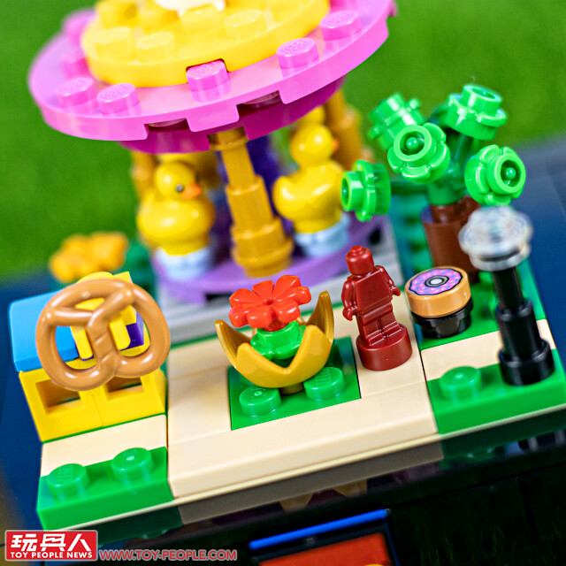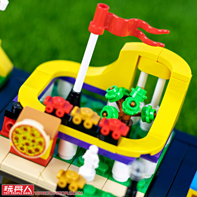 ▼ 藉著插銷與孔洞的科技磚,以及 1×2 的平面磚,就能把所有的遊樂園場景組合在一起啦~