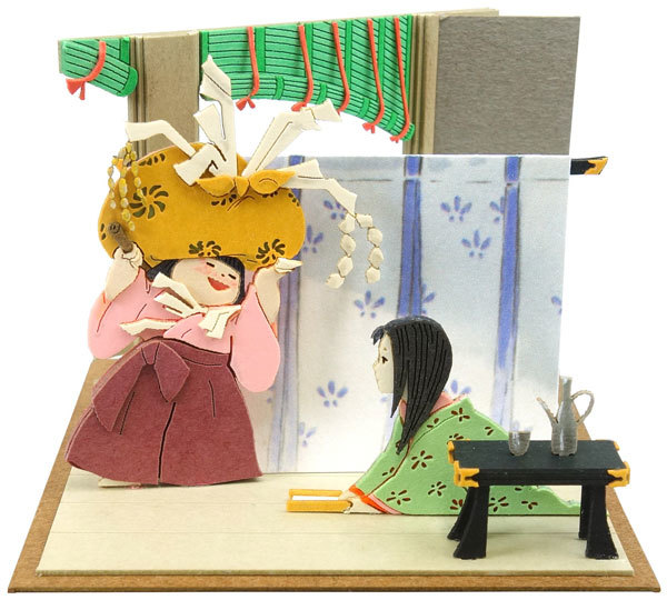 名場景包含了「かぐや姫の誕生」、「女童とかぐや姫」、「山桜の木の下で」、「御門とかぐや姫」、「月からのお迎え」等五種,從輝耀姬從誕生,一直到被佛祖接走,完整地利用紙雕藝術製成,每一幅名場景中,輝耀姬的所有表情更是栩栩如生。