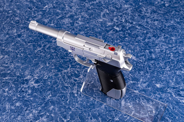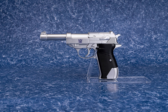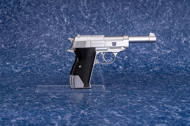 喜歡早期《變形金剛》動畫影片的老粉絲們,必定都記得一身銀灰色,肩膀上還扛一支大砲的密卡登(早期的翻譯名稱為:巨無霸)來到地球之後,可以變形為一支巨型手槍(賽博坦內戰時期則是變形為坦克),其造型是參考德國瓦爾特 P38 手槍,交由別人來進行射擊。