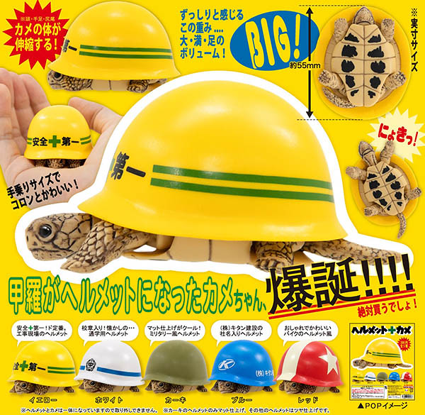 日本知名轉蛋品牌奇譚俱樂部(キタンクラブ),將參考隔壁棚大人氣烏龜為主題,推出結合安全帽與烏龜的話題性轉蛋新作「安全帽+烏龜」(ヘルメット+カメ)趣味轉蛋,一共五種款式,預計將於2021年01月開轉。