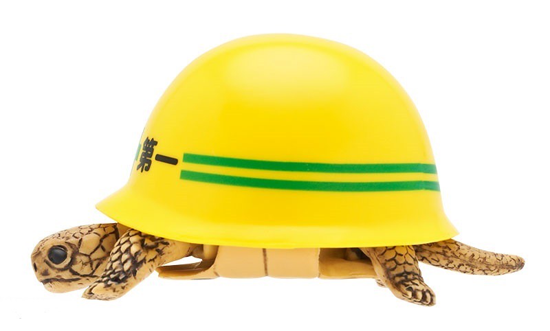 俗話說蟑螂怕拖鞋,烏龜怕鐵鎚(哇好老派),不過這款奇譚俱樂部推出的「安全帽+烏龜」轉蛋,安全防護再升級!秉持著安全第一的原則,將龜殼變成安全第一工地安全帽、學生上下學戴的學生帽、軍事風頭盔、奇譚建設安全帽以及潮流星星安全帽五款趣味造型,每款尺寸約5.5公分,仿造烏龜縮入殼的動作,頭與四肢、尾巴都可以縮入殼內,相當精緻!放在手上也超級可愛~(但這設計是不是有點熟悉呀?)